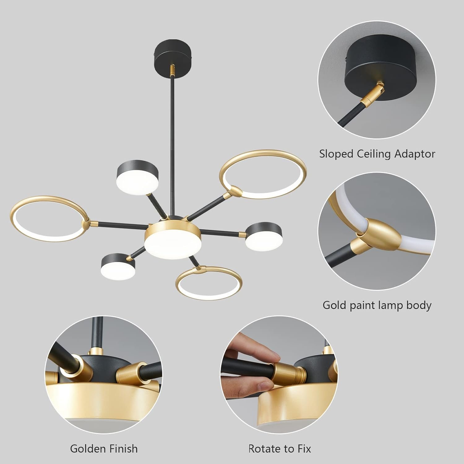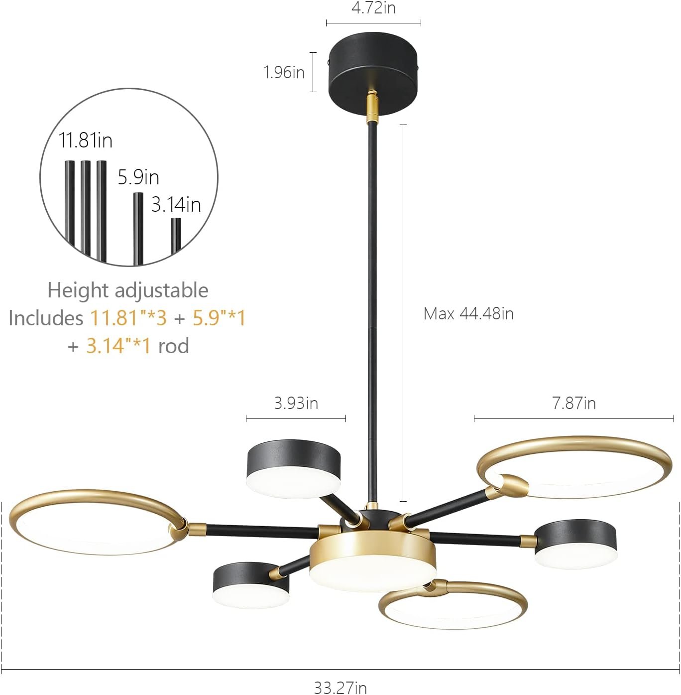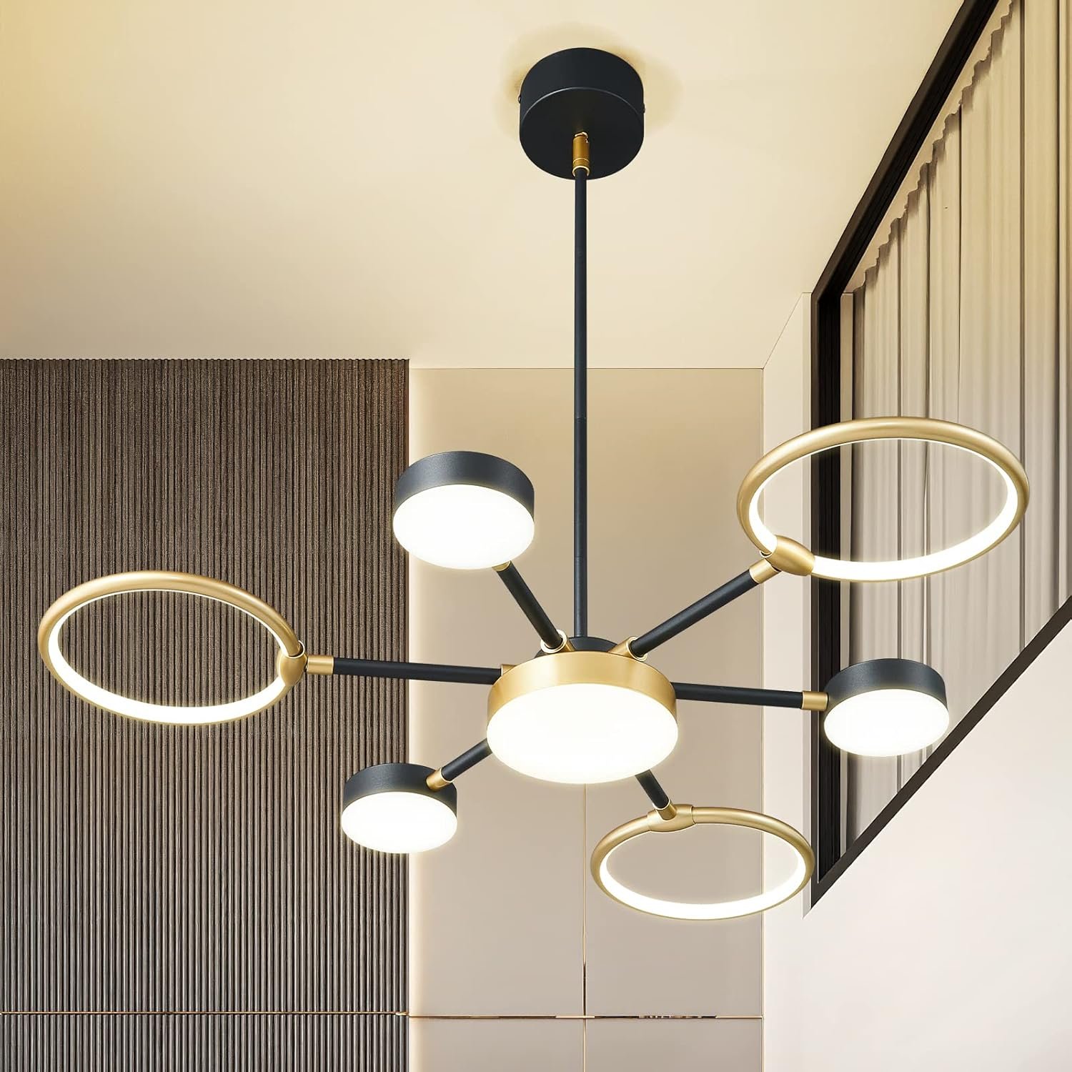 Chandeliers Light Fixture Black Gold LED Pendant Light Farmhouse Black Sputnik Chandelier for Dining Room Bedroom Living Room Kitchen Foyer
