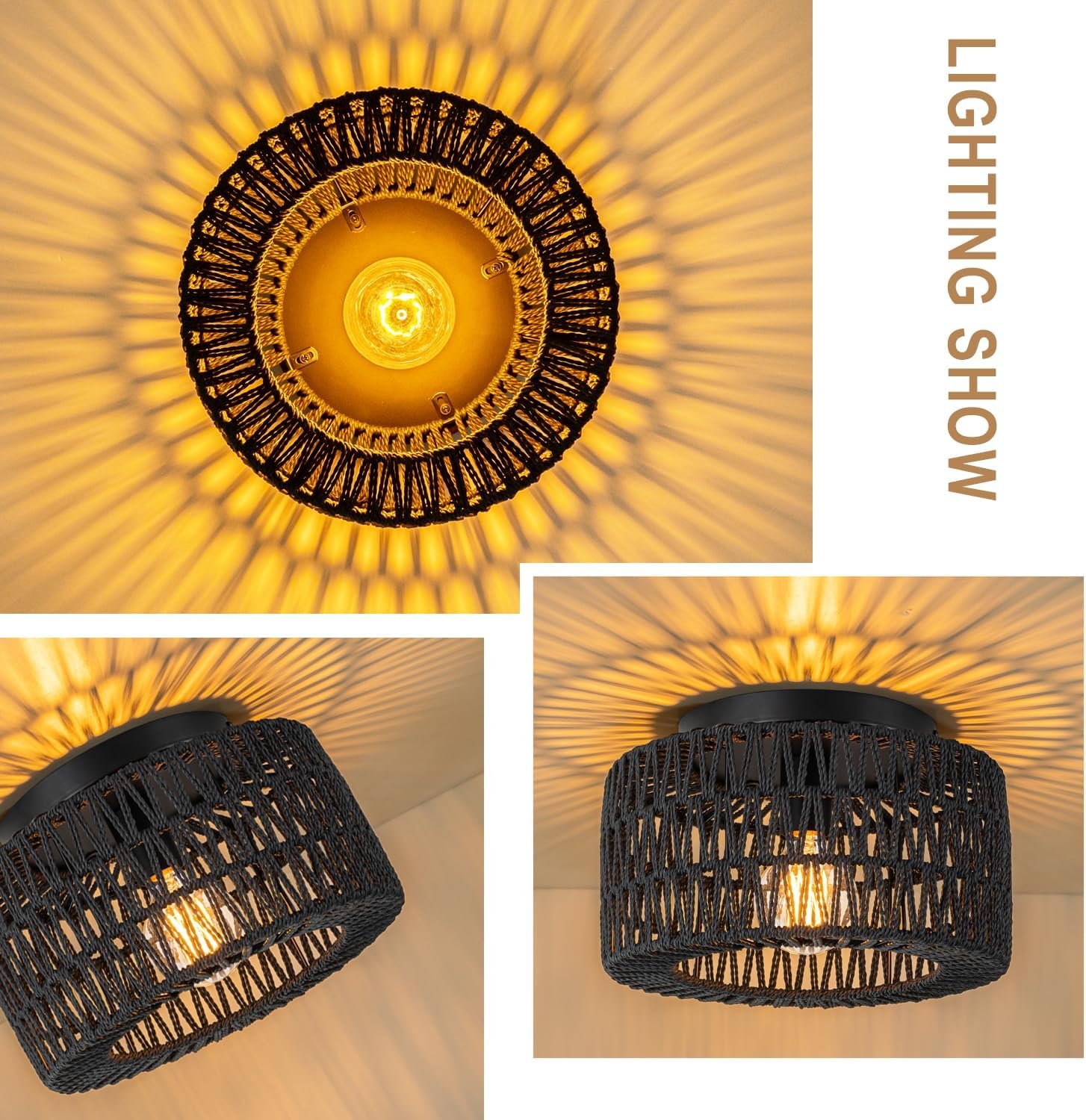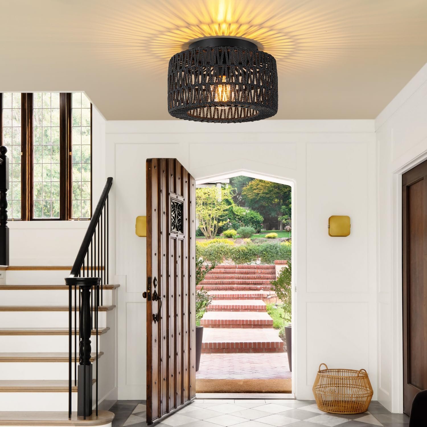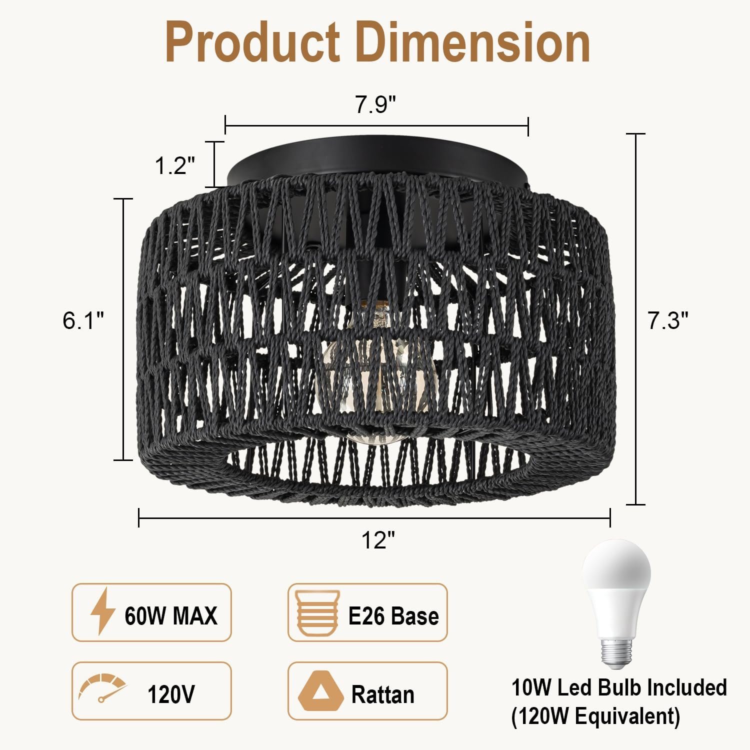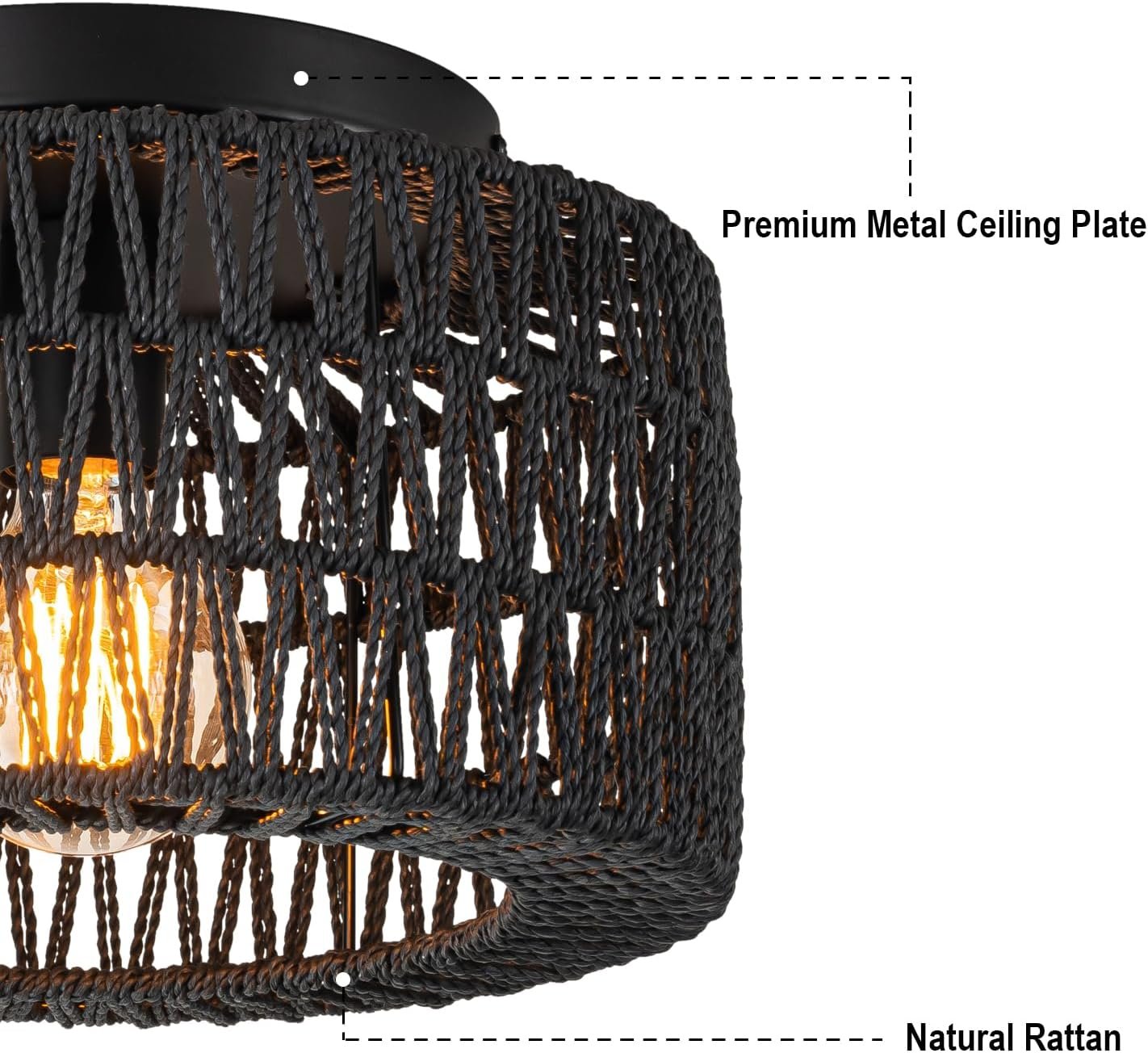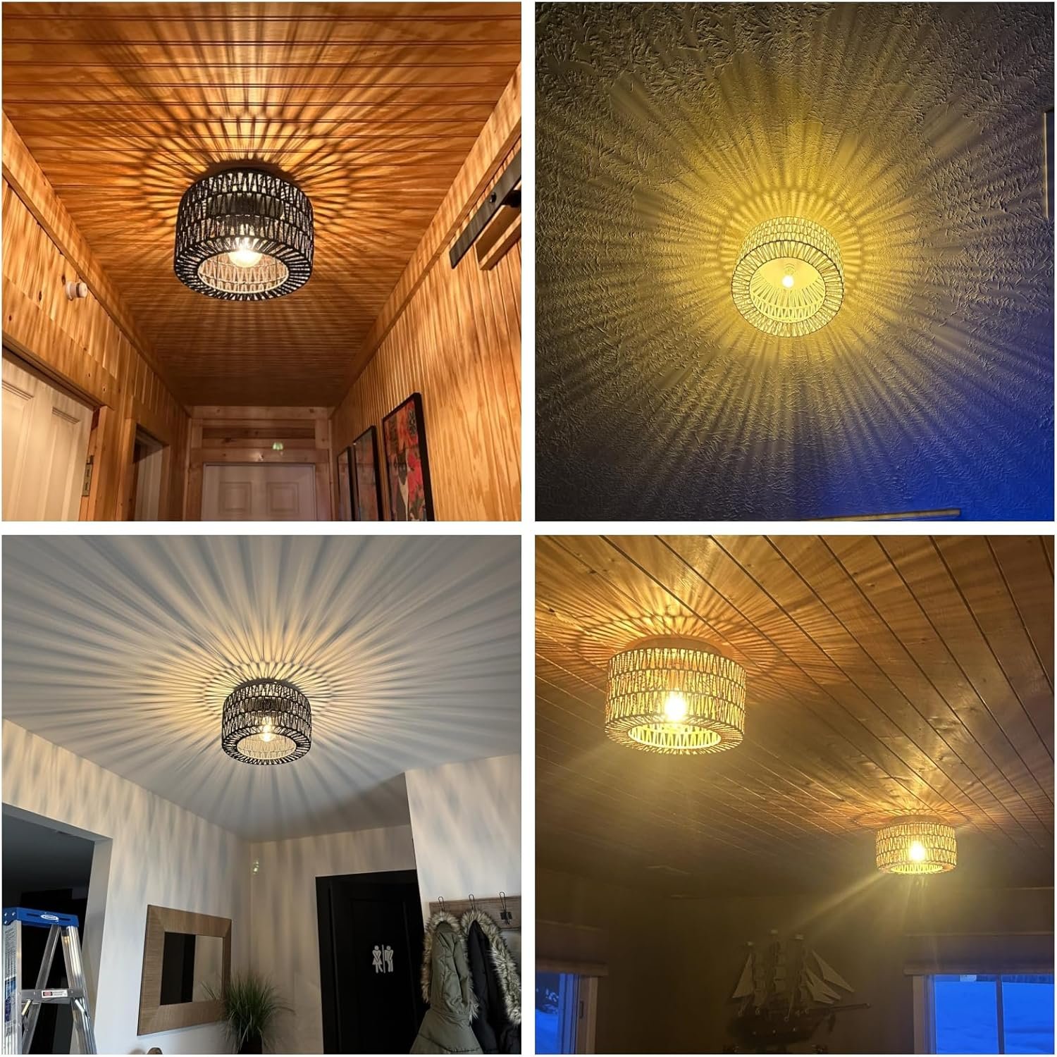 SineRise Rattan Ceiling Light Fixtures (12-Inch, LED Bulb Included), Hand-Woven Boho Flush Mount Ceiling Light, Rattan Chandelier for Hallway Kitchen…